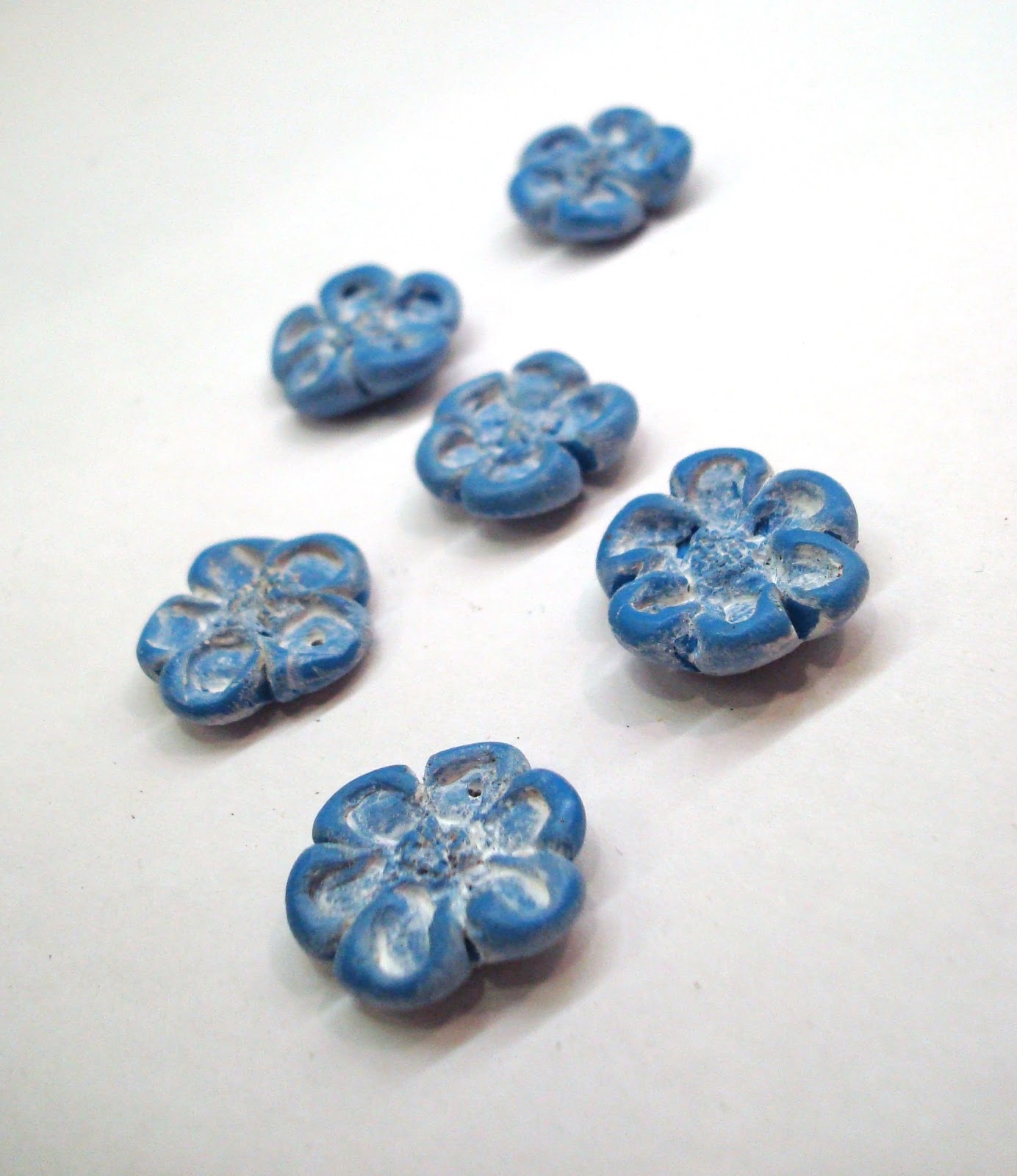 I knotted the glass nuggets along black cotton cord. Then I added a length of handmade copper chain with clusters of glass flowers in the same colors. Nestled amongst the flowers are twisted copper wire beads with rosy tipped ball ends I made. You can see one between the blue flowers here.
